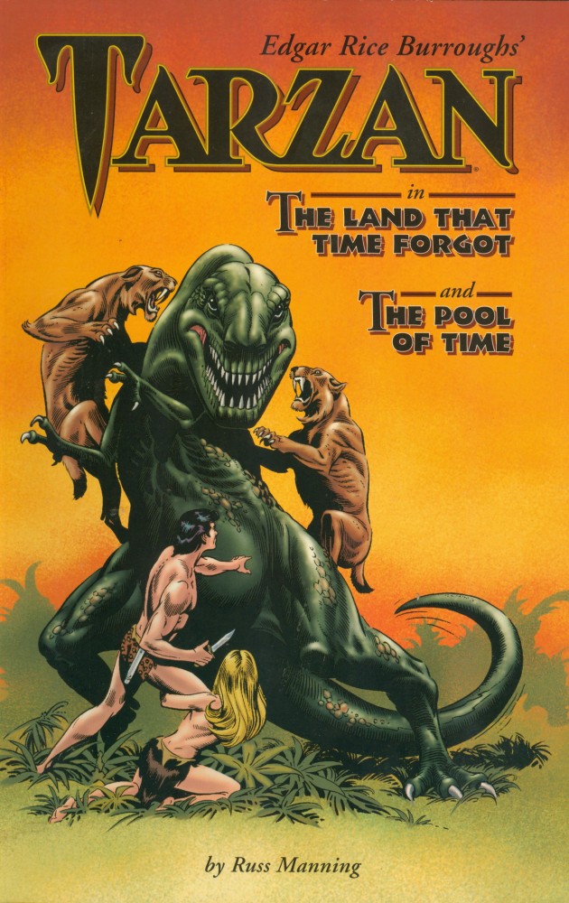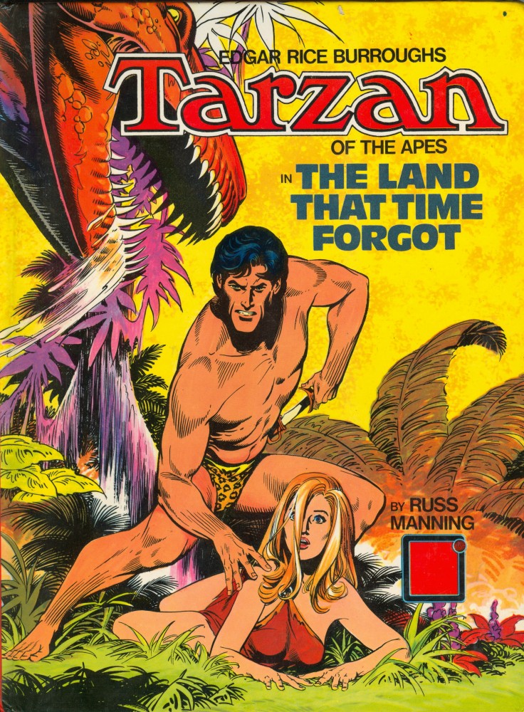 In the 1960s Russ Manning took over the regular art chores from Jesse Marsh on the Tarzan comic book, originally published by Dell and later by Gold Key Comics (Western Publishing Company). Russ had worked on the book, but not on a regular basis, as far back as the 1950s. Russ loved prehistoric creatures and loved drawing them — and included plenty during his four-year stint writing and drawing the Tarzan newspaper comic strip.