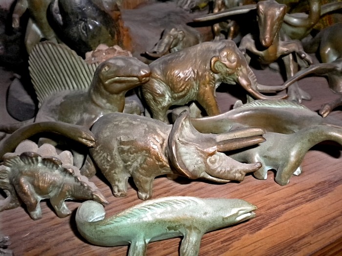 SRG (initials for Sell Right Giftware) metal figures — in large and small sizes — first made in the 1930s, but sold for decades thereafter. These figures were mostly (but not exclusively) sold at museum gift shops.