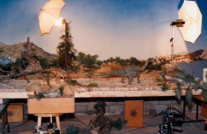 Some (but not all; see animatronic Allosaurus) of the prehistoric animals in my movie Dinosaur Valley Girls were stop-motion models, created and animated one frame at a time by Thomas R. Dickens. These included a stop-motion Allosaurus (“Jurassic Punk”).