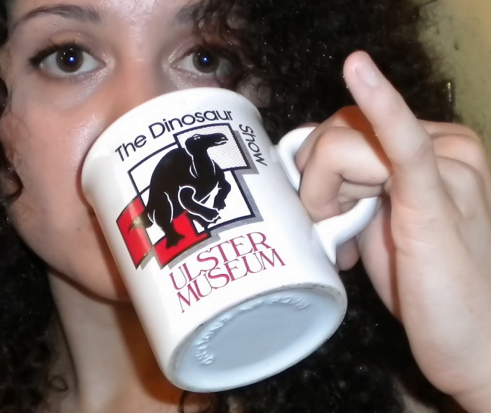 I have a lot of coffee cups featuring prehistoric imagery. Here’ one from The Field Museum, also one from the Ulster Museum in Belfast, Ireland (see also collectibles for The Field Museum‘s “SUE” and Dinosaur Park, Rapid City, SD).