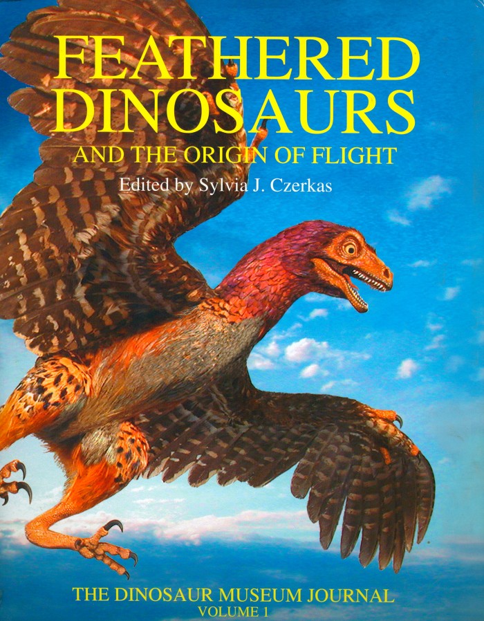 Some Sylvia J. Czerkas collectibles, including books edited by Sylvia and postcards showing some of her sculptures of prehistoric animals.