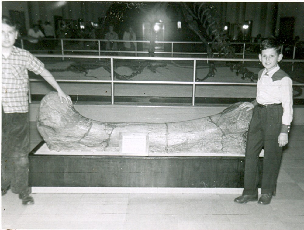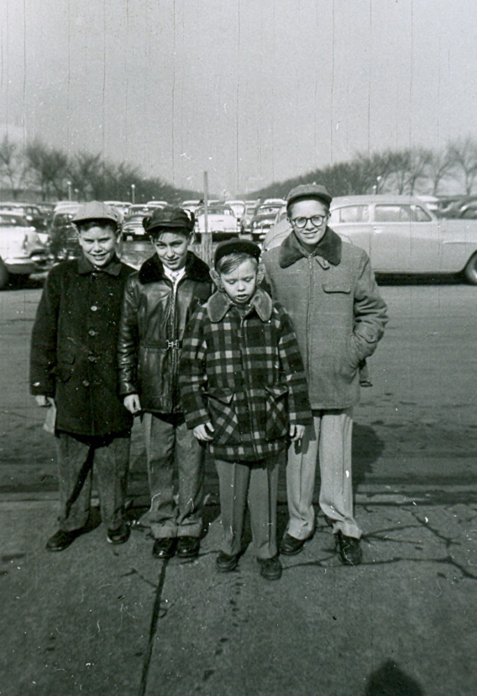 Some young friends (below) waiting anxiously in the cold Chicago winter to go inside the warm museum; from left to right Yours Truly, Bert Ott, Len Keippel and big brother Ron (whose early artwork would someday grace my wall, and who would go on to create “The Great Dinosaur Hunt” board game).