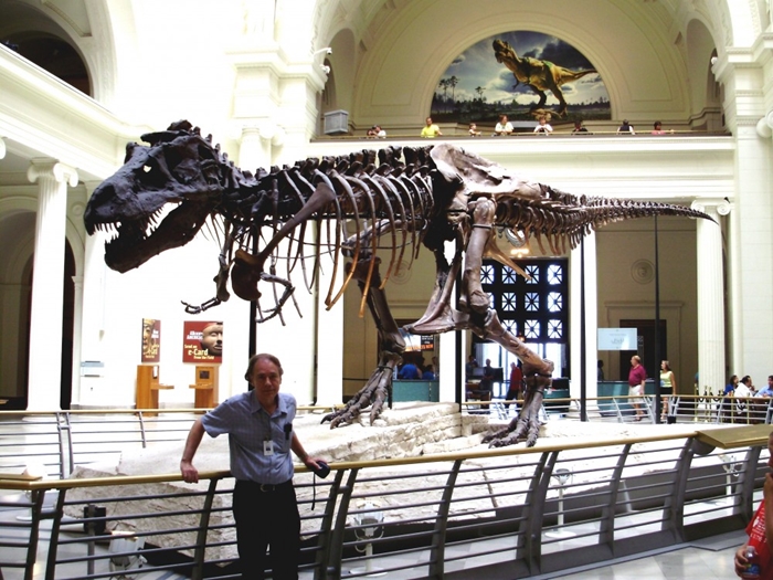 In later years, long after moving to California, I’d become a volunteer at The Field Museum (now home to “SUE,” the famous Tyrannosaurus rex skeleton; see much more recent photo below), doing my work there whenever I returned on a visit to Chicago.
