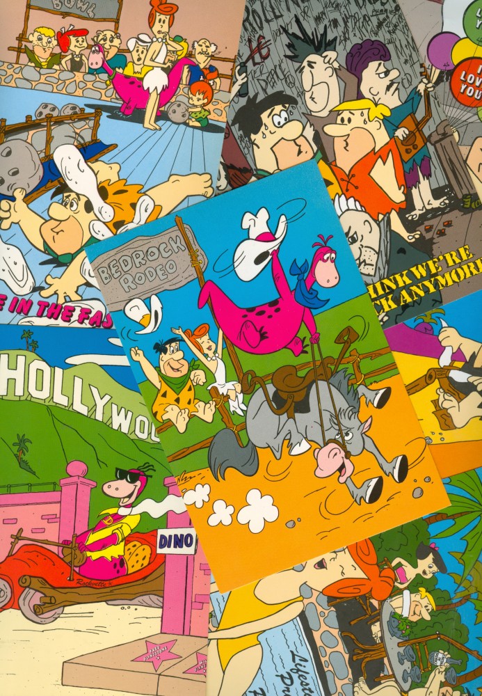 There are postcards featuring The Flinstones characters. This montage shows some of them.