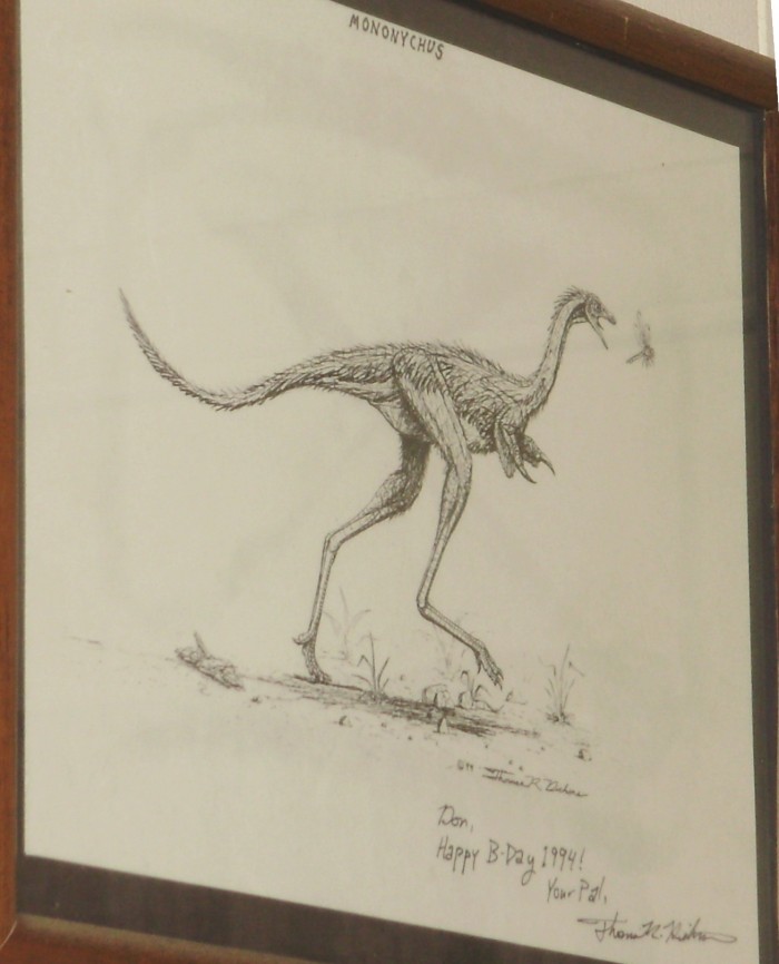 Drawing of the birdlike dinosaur Mononykus by Thomas R. Dickens who created the special effects (CLICK, CLICK and CLICK) for my movie Dinosaur Valley Girls.