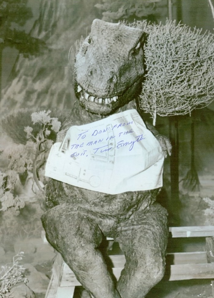 One of many autographed photos, this one of Tom Smyth,who played the Tyrannosaurus in the 1957 movie The Land Unknown.