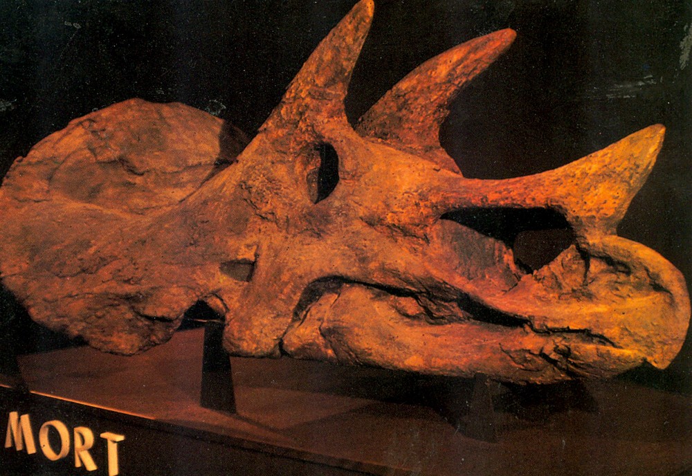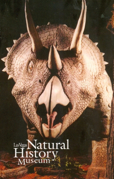 Souvenir postcards from The Science Museum of Minnesota, St. Paul, MN, showing a mounted Triceratops skeleton, the Museum of the Rockies, Bozeman, MT (Triceratops skull), and the Las Vegas Natural History Museum (life-size mechanical figure).