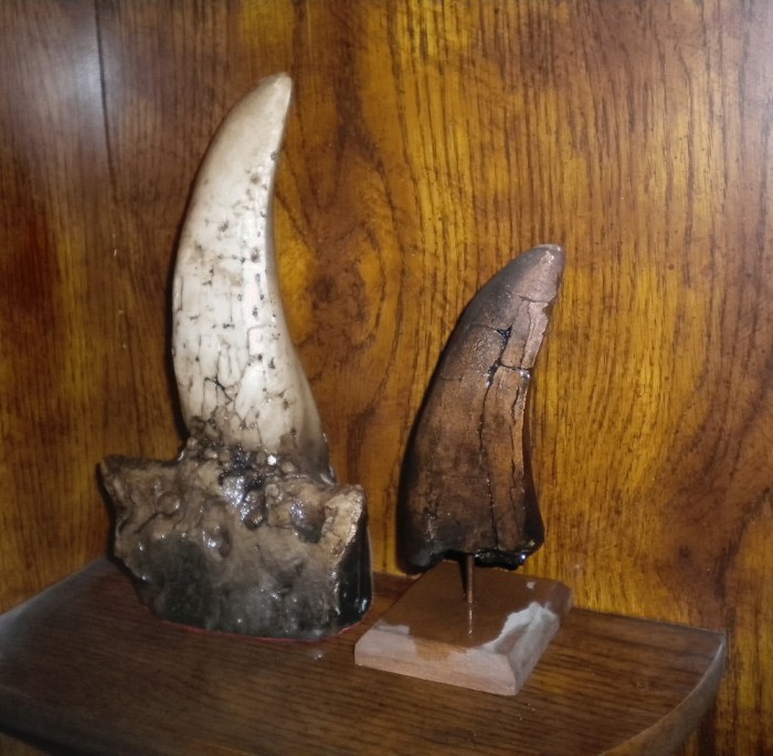 Teeth (casts) of Tyrannosaurus rex sold by the Natural History Museum of Los Angeles County gift shop.