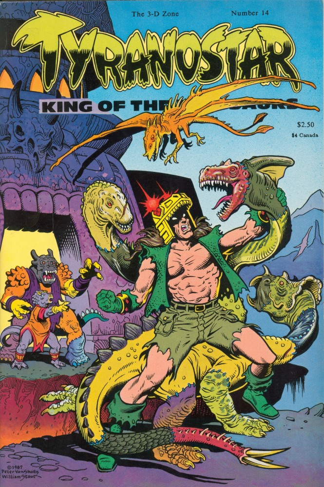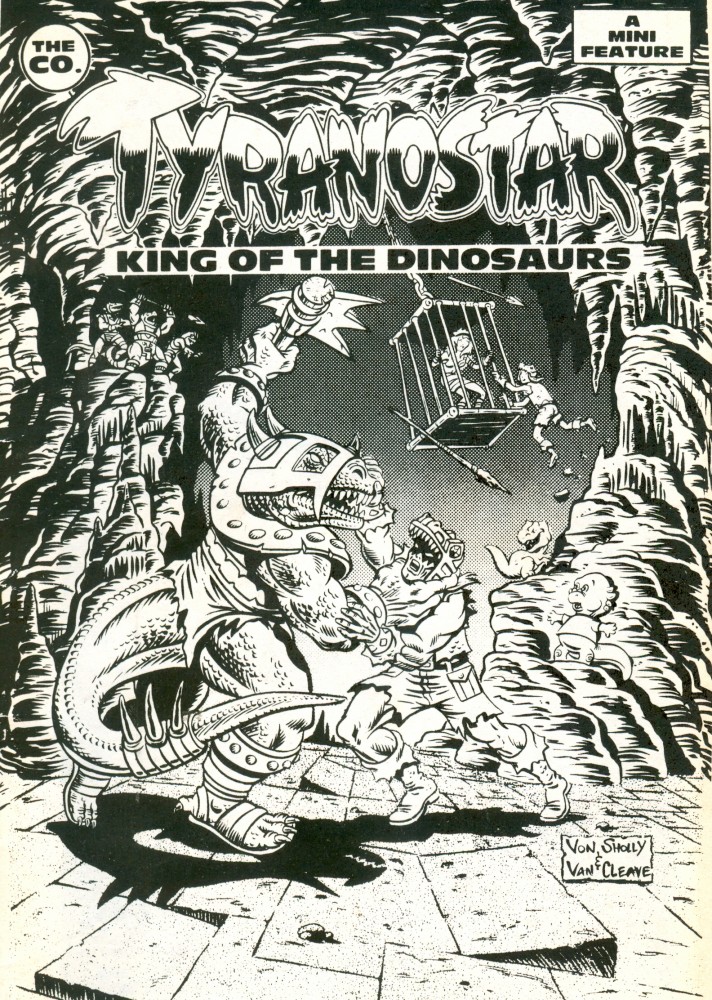 Tyranostar was a comic book created and published by Pete Von Sholly and Michael Van Cleave in 1986 and 1988. The title had a limited print run and copies today are collectors items. The Ugh! comic book was published in 2014. Pete loves to draw dinosaurs!