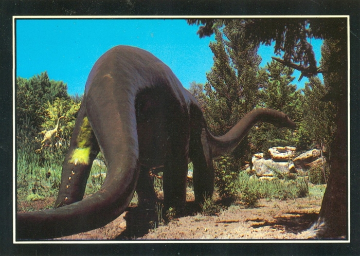 This model was based upon one of the many full-size statues made by Elbert H. Porter and displayed in the “Dinosaur Gardens” in back of the museum (see post cards and other collectibles, below). Indeed, Vernal is a kind of “Western USA capitol” for dinosaurs, located near Dinosaur National Monument (Utah-Colorado). Both Vernal and Dinosaur National Monument have both long been sources of myriad dinosaur-related collectibles. (To see just a few of these items click on those links.)