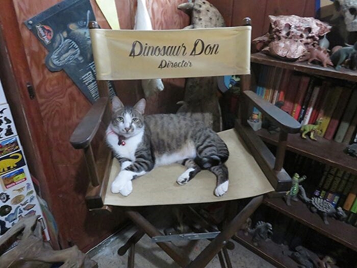 An office is not just for working, but also for displaying dinosaur and other prehistoric collectibles.
