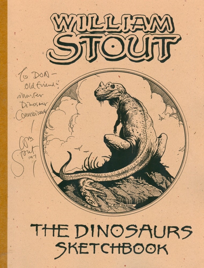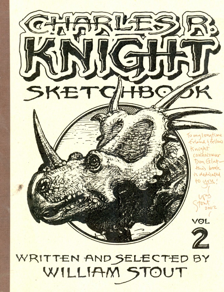 Multi-talented William Stout is also, among other things, an author who has written and had published a number of books about things prehistoric. (Kindly, Bill dedicated his Charles R. Knight Sketchbook (see below) to Yours Truly.)