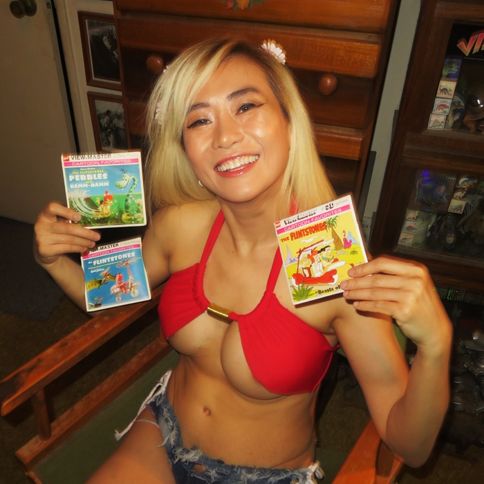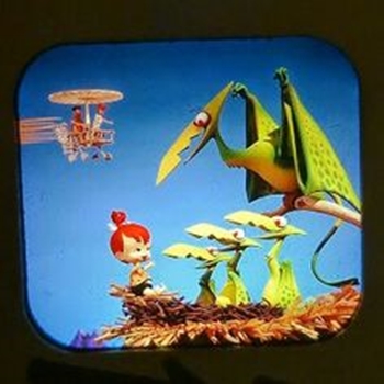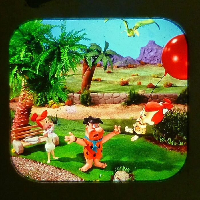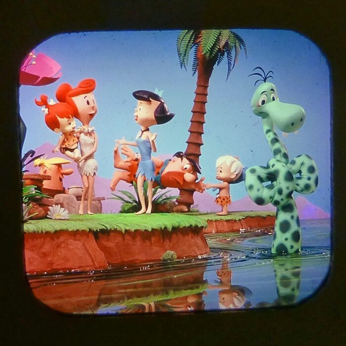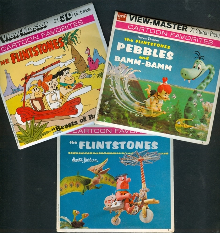 Based on The Flintstones TV cartoon character, these View-Master stereo viewing sets proving 3-dimensional images. There were also “Dino” plush toys, both large and small, comic books and other items, all now quite collectible.
